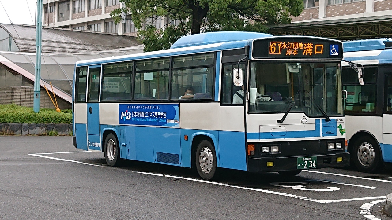 日ノ丸観光(ホテルニューオータニ鳥取)、鳥取大丸、日本海テレビジョン、鳥取空港サービス、鳥取砂丘会館など、鳥取県で幅広く事業を展開する日ノ丸グループ企業のバス会社。エリアは鳥取県と島根県東部で、1910年創業。バス事業の開始は1917年と歴史がある。現在は、東京、姫路、岡山、広島、福岡方面への高速バスと、鳥取砂丘コナン空港へのリムジンバス、米子鬼太郎空港へのリムジンバス、隠岐汽船連絡接続バスや、鳥取、倉吉、米子を中心に鳥取県全域の路線バスや周遊バスを運行。路線バスは、以前、同じ鳥取県内を走る日本交通と競合路線が多数あったとのことですが、現在では鳥取駅~鳥取砂丘など共同運行の路線を除き、整理されています。グループ会社に日野自動車の代理店があるため、車両は日野製がほとんどで、以前は大型車が中心でしたが、最近は中型車が増えています。また、他社からの譲渡車も投入されているようですが、競合の日本交通よりも古い車両が多いように感じます。鳥取、米子それぞれで、何度も乗車ましたが、運転手さんについて、クレームするようなことはありませんでした。