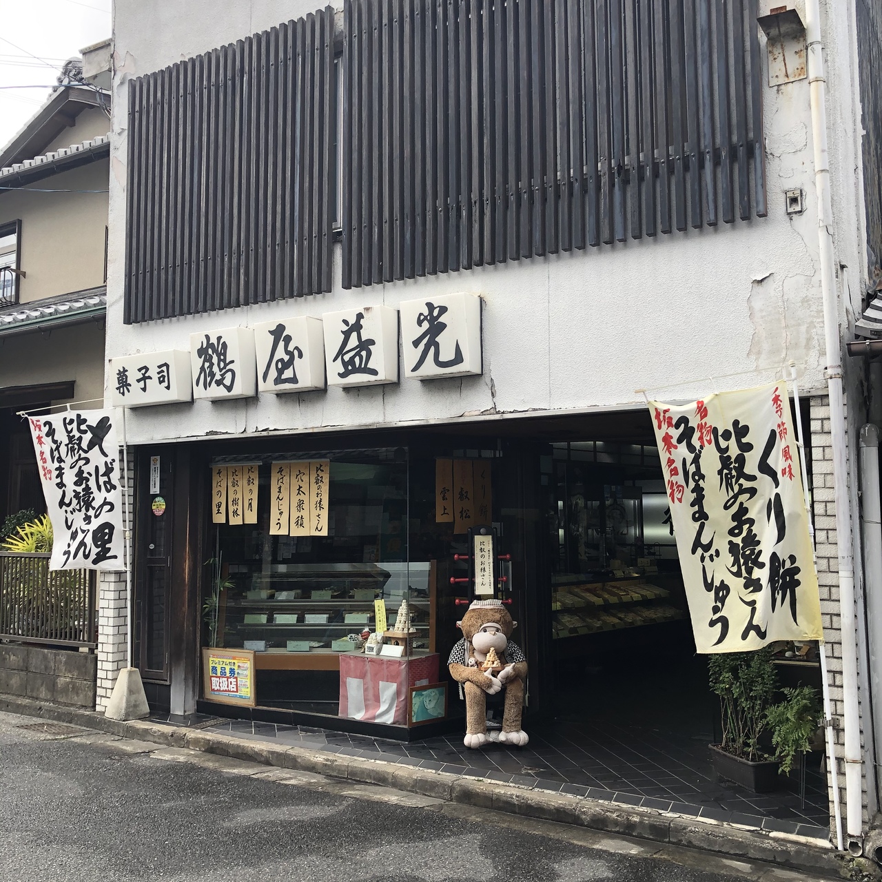 鶴㐂そばのすぐ近くに和菓子屋さんの鶴屋益光がありました。