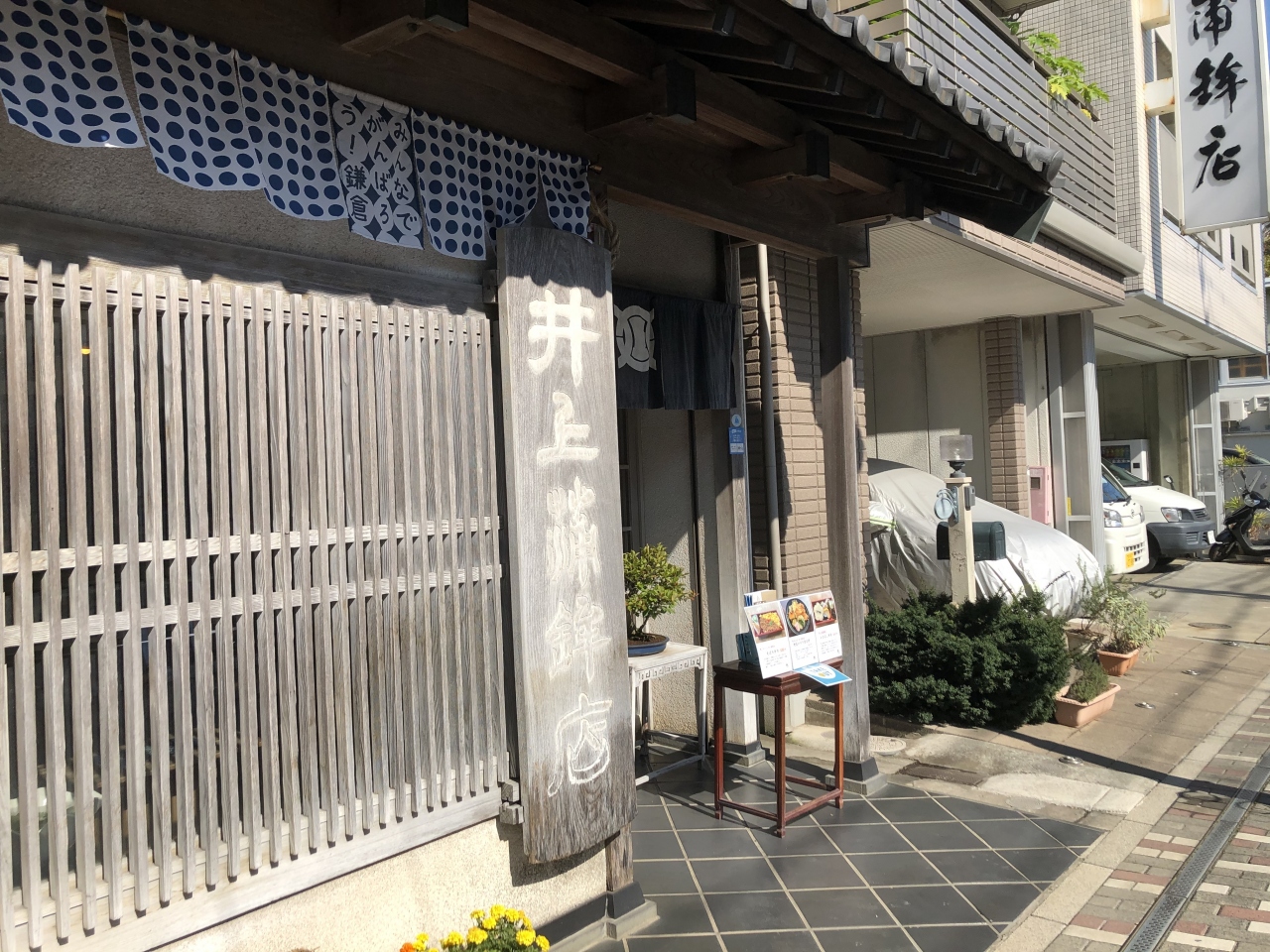 由比ヶ浜大通り沿い、江ノ電の和田塚駅から歩いて1分のこと路にある老舗かまぼこ店です。昭和6年の創業(大磯)で、かまぼこが高級品だったころから、皇室や文化人に愛されてきたといわれています。由比ガ浜大通の店舗は歴史を感じさせる店構えで、特に「井上蒲鉾店」と書かれた木の表札は、趣があります。