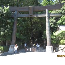 大きな駐車場からすぐ真ん前に、鳥居があります。