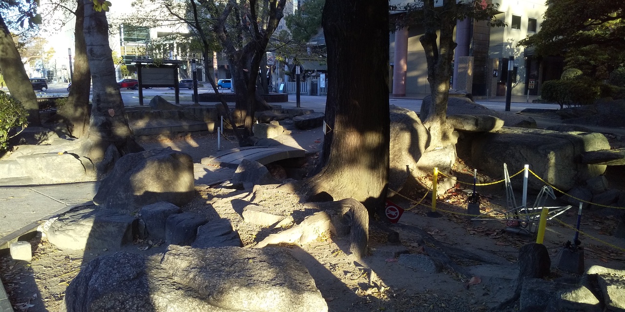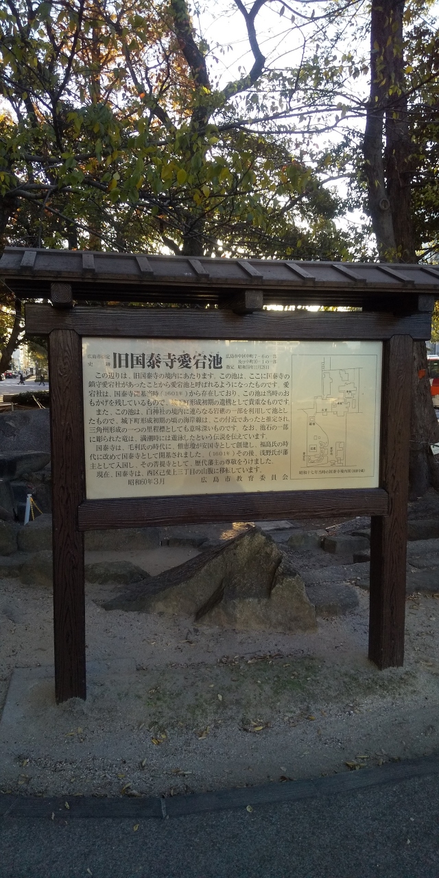 旧国泰寺があった場所に残る池の跡です。お寺は原爆により全焼してしまいましたが、その庭園の石や池の跡だけがのこる遺構になっています。
