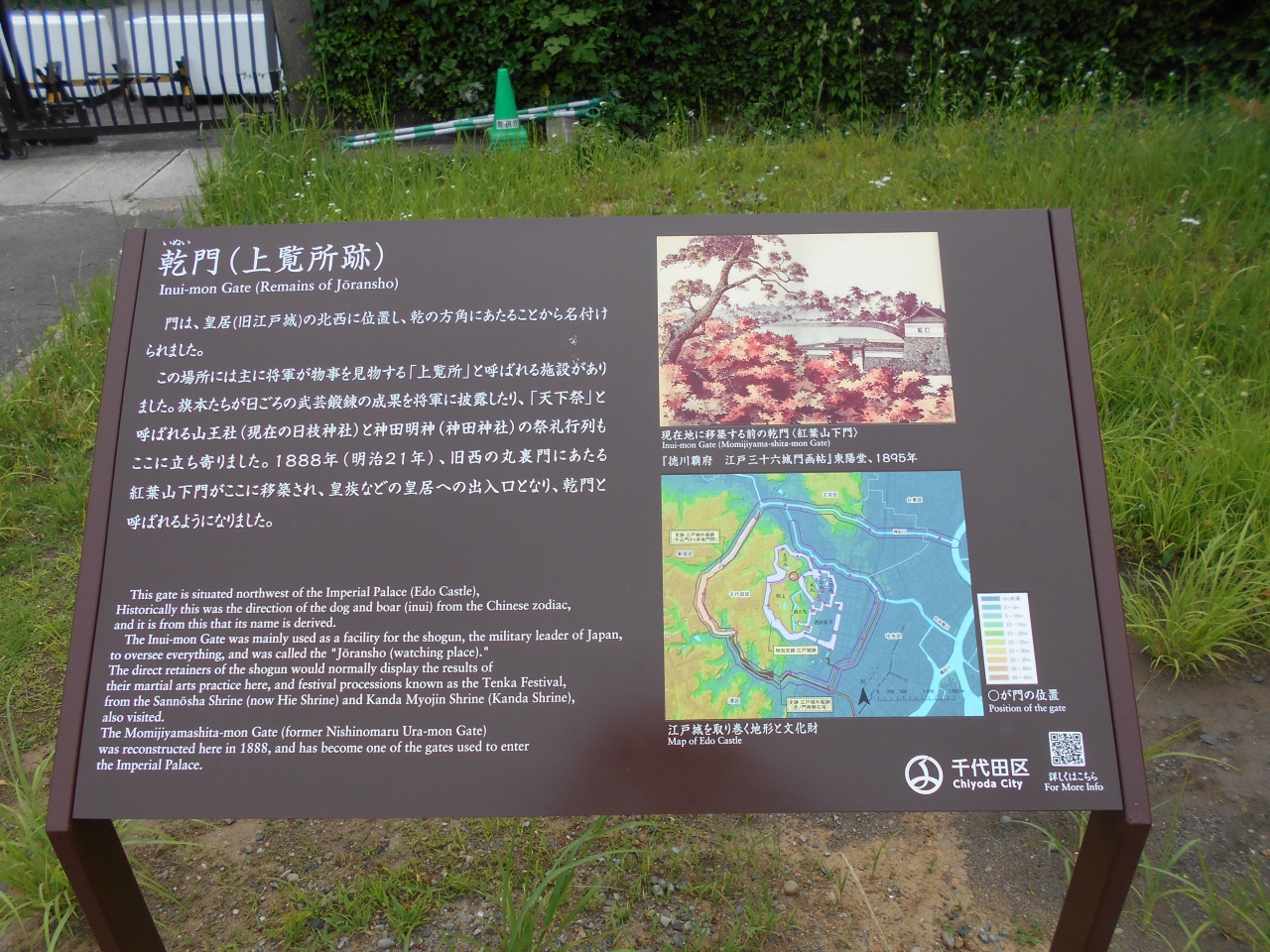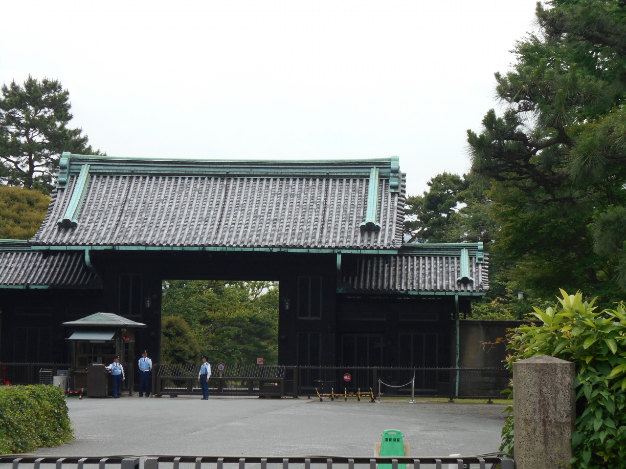 サクラ、紅葉の名所である乾通りは一般公開されます。坂下門から入り乾門から出ます。通常は、警察官によって厳重に警備され、黒ぽく見える豪壮な門です。元々ここには門はなく、明治中期に西の丸裏門を移築したそうです。