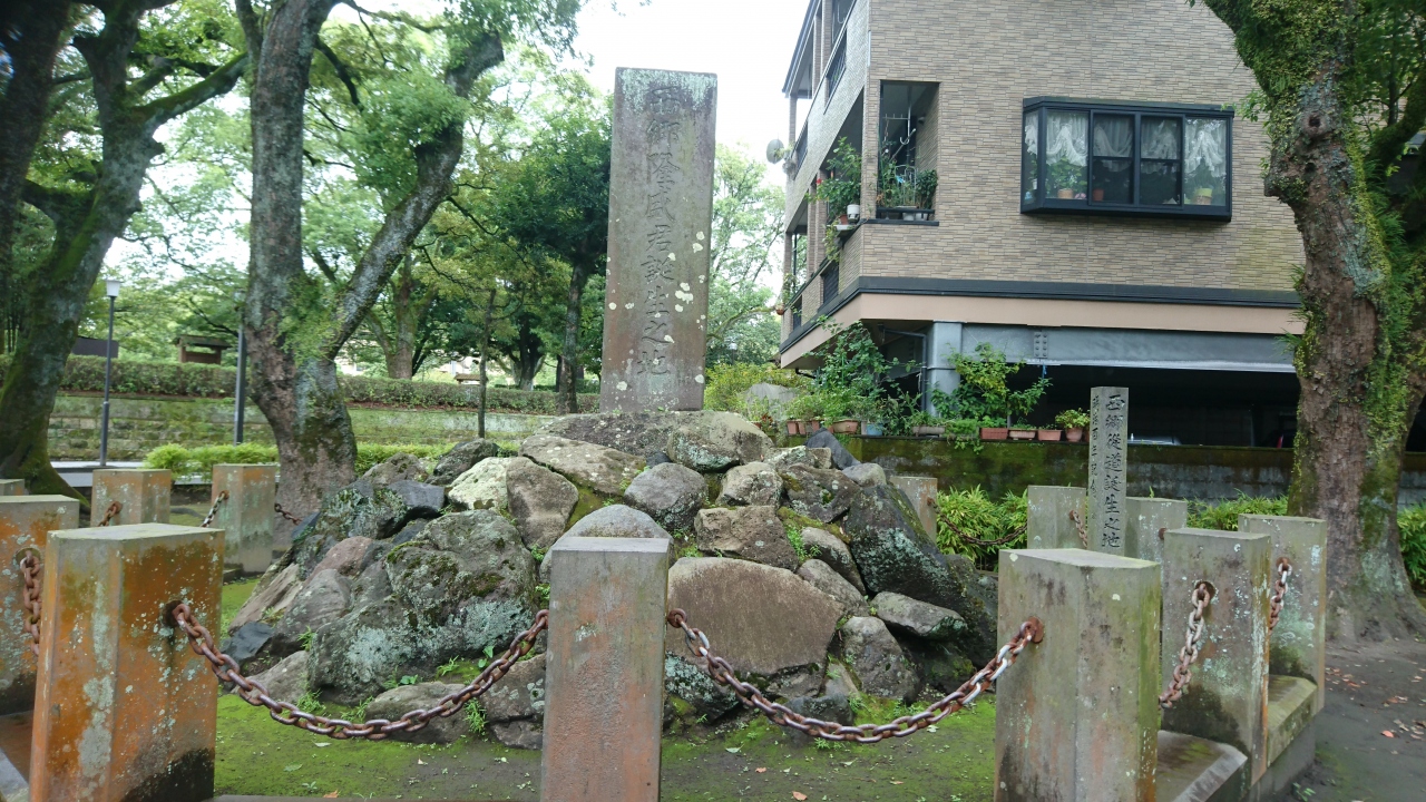 甲突川沿いの遊歩道に隣接した円形広場内に一段高くなって西郷隆盛誕生の地碑がありました。この地で隆盛・従道兄弟が青年時代まで過ごしたそうです。見学に行った日も地域の人たちが清掃活動を行っており、地元に愛されているのがよくわかりました。