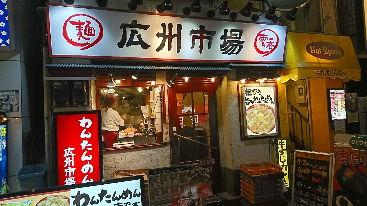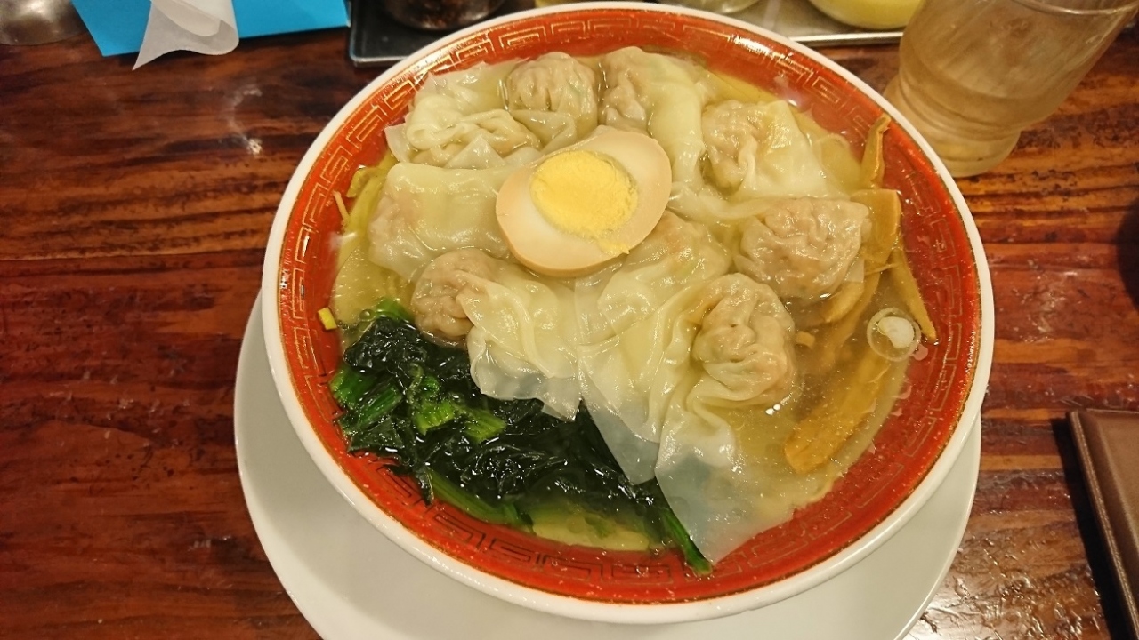 新宿駅西口にあるワンタンメンが有名なラーメン屋さんです。夕食で広州雲呑麵塩をいただきました。具はワンタン7個、ゆで卵半分、ホウレン草、メンマ、ネギで、透き通った塩スープと中華縮れ麺の一品です。ワンタンの餡には肉が多く、味的にも美味。かなりレベルの高いワンタンだと思います。ワンタンメン好きの方におすすめです。