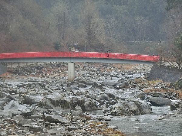 香嵐渓を形成した巴川に架かる橋です。高欄が赤く塗られています。どこにでもあるようなコンクリート橋で、特筆すべきことはないように思えます。強いて言えば、紅葉の時期にちょっとした彩りやアクセントを与えるといったところなのかもしれません。