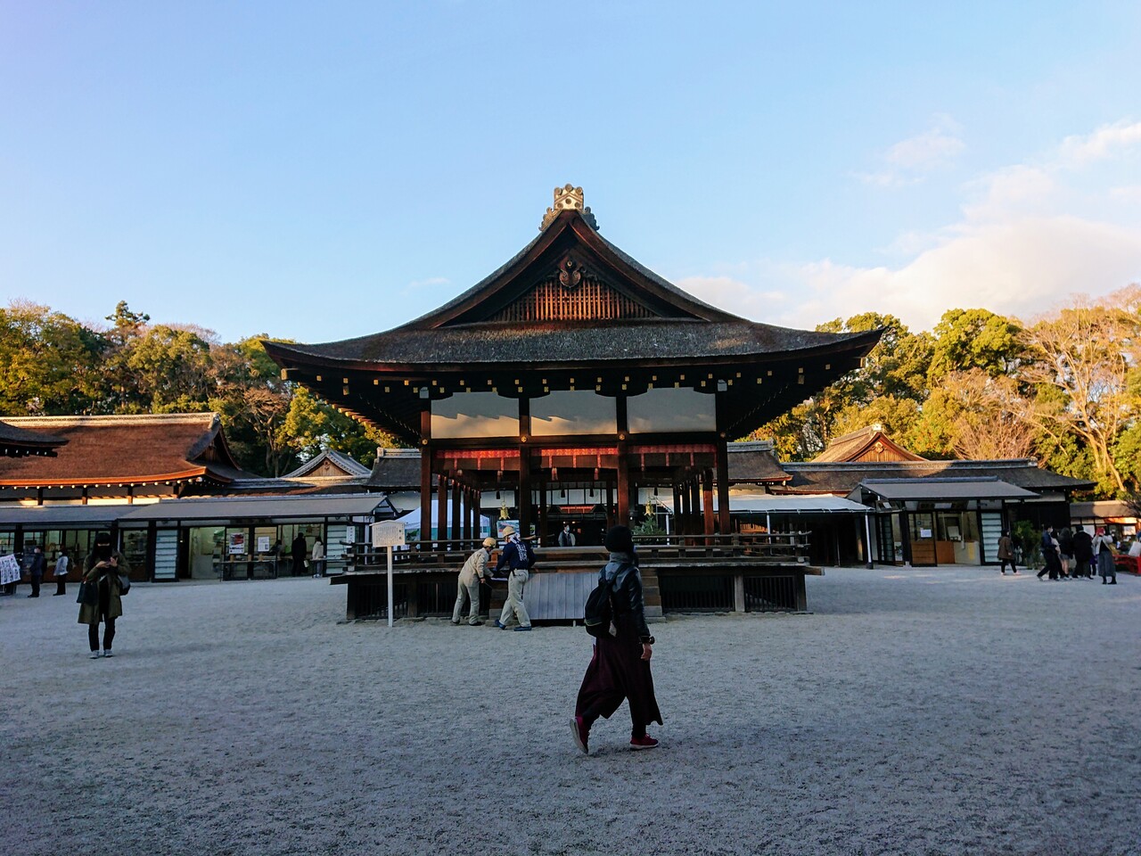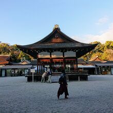 世界遺産下鴨神社の楼門をくぐり抜け、聖域に入った正面にこの下鴨神社舞殿(ぶでん)が現れます。