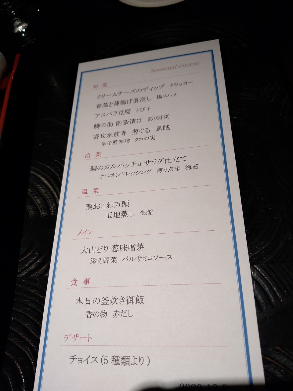 【季節のディナーコース】冷菜、温菜、メインなど全6品