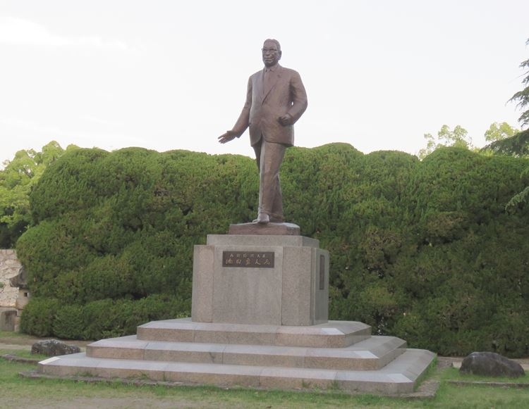 広島県出身の第58,59,60代総理大臣の銅像。広島城のお濠端に碑が建てられています。昭和の時代の政治家の銅像と思うと歴史的偉人までは行かなくとも郷里に銅像が建てられるという一例でしょうか。没後50年を機に劣化を理由に現在はレプリカに置き換えられているようです。