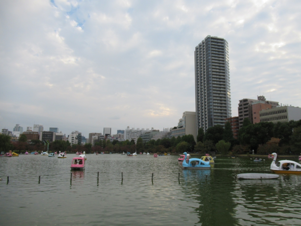 意外と広い上野公園、湯島駅や根津駅に近い南側は不忍池となってます。大きな池は3分割されていて、西側は動物園のエリア内、東側は蓮が植えられていて、夏は見応え抜群、南側はボート池となってます。蓮の池とボート池を遮る歩道はソメイヨシノが連なっていますが、ボート池の南側も八重桜がたくさん植えられていて、春の季節は長い期間が楽しめます。
