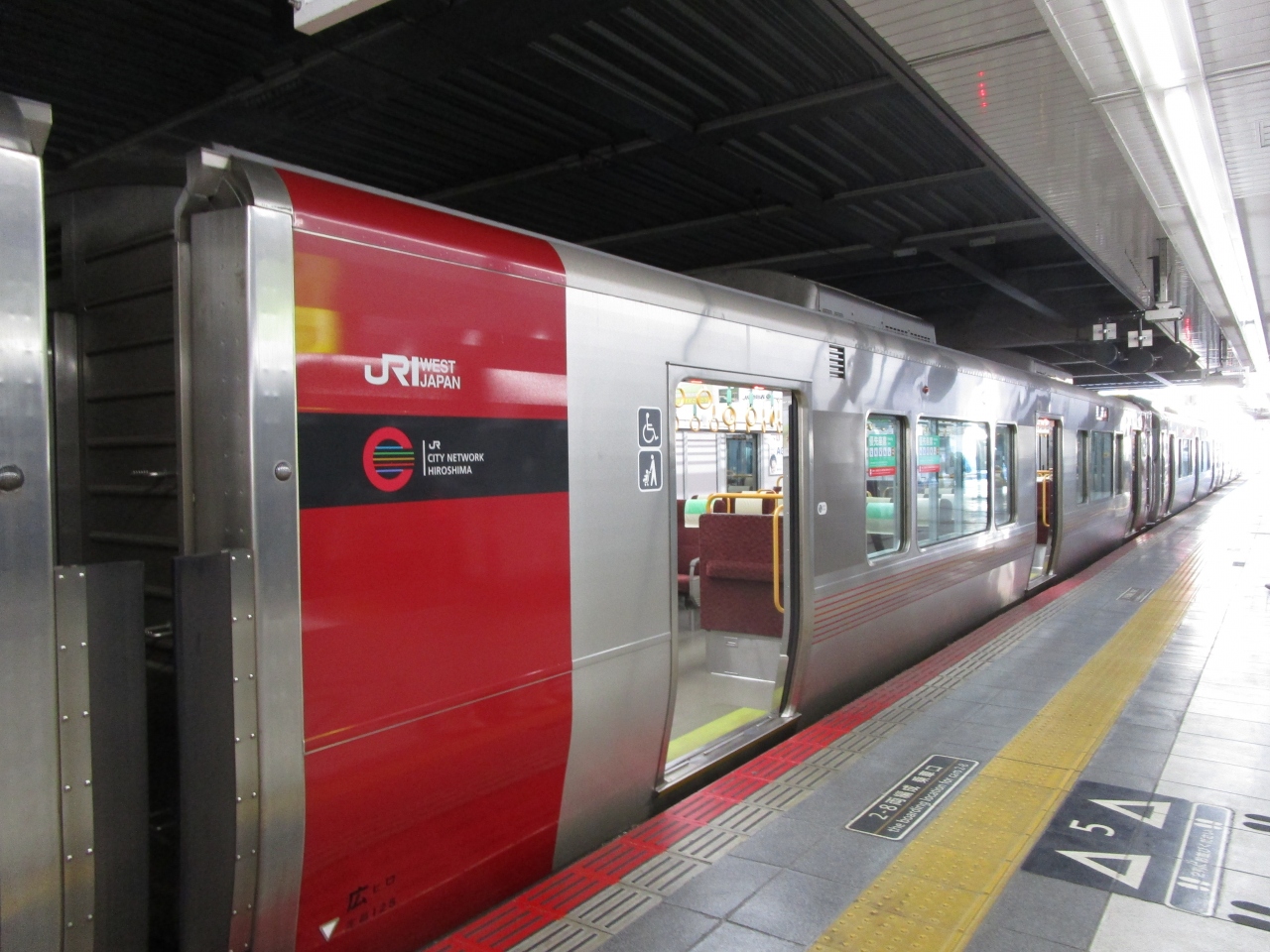 広島駅と西広島駅の往復でJR山陽本線の在来線を利用しました。車両は「Red Wing」という愛称がつけられているもので、車体の赤い装飾が目に付きます。比較的新しい車両のようで、車内も綺麗な感じがしました。