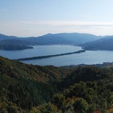 こちらの方が標高が高い分、より全景を見渡しやすいかも。ななめに見える砂州も傘松公園と同様。