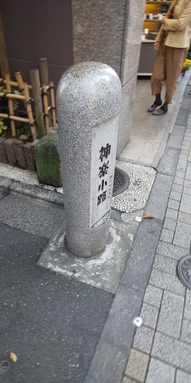 神楽坂の脇の路地です。とても細い道ですが、わりと人は歩いていました。