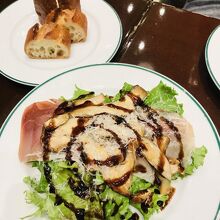 セップ茸(ポルチーニ)と生ハムのサラダ@930はバルサミコソースとの相性も抜群!