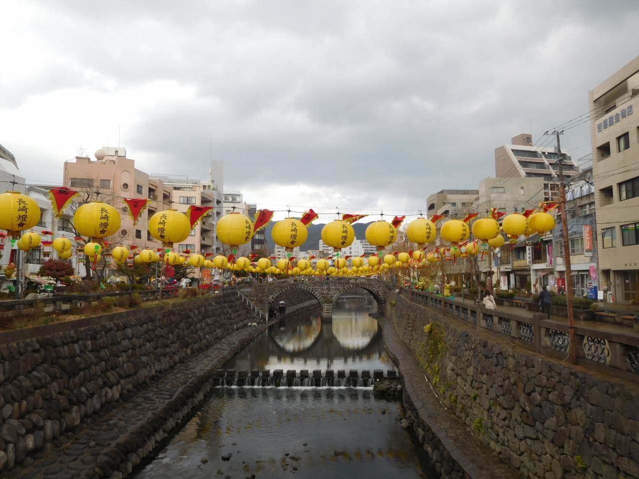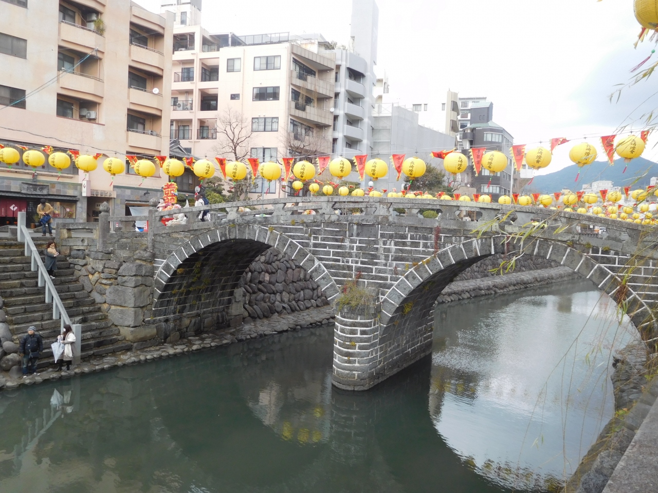 長崎市を代表するスポット。町の中心にあり、周辺はいかにも観光地という感じ。初めての長崎ならおすすめスポットでしょう。私が行ったときは雪が舞っていました。川沿いに降りるときは少し注意が必要です。1人が歩いてちょうど良いくらいの広さしかありません。