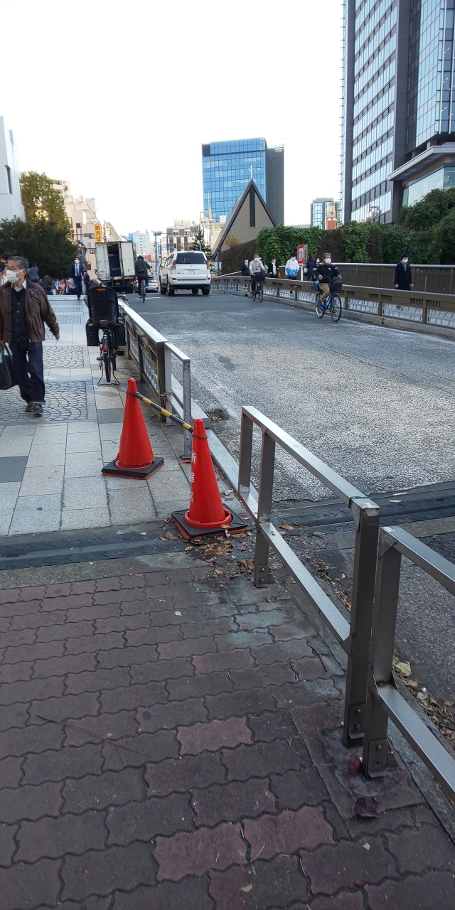 飯田橋駅がすぐ近くにあるので橋の上を往来する人が多いです。