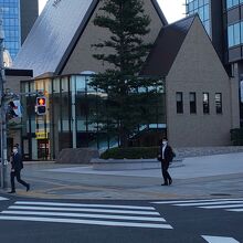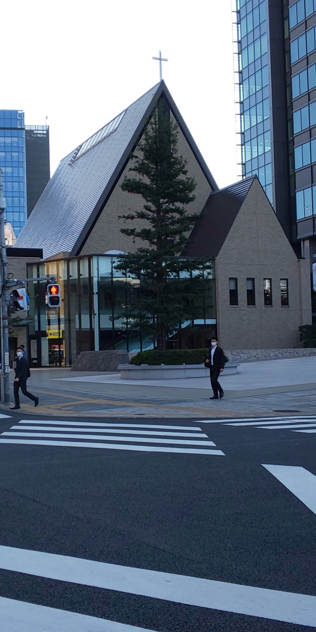 一部ガラス張りとなっているところもあり、現代的な外観をしているなと思います。屋根のてっぺんに十字架がありますが、この十字架がなかったら一体この広場になんの建物だろうと思ってしまう飯田橋サクラテラス前の広場にあります。
