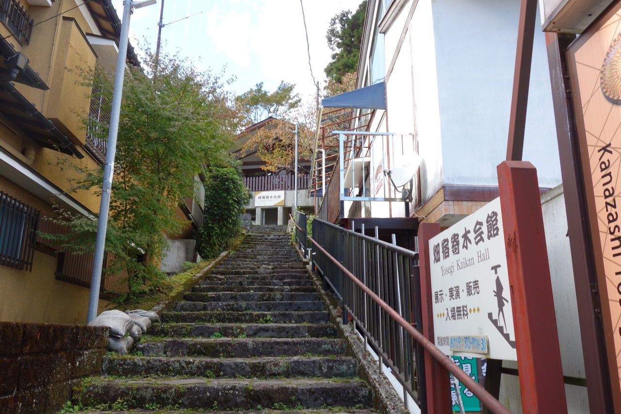 箱根に滞在中こちらの場所を訪れました。旧街道を芦ノ湖あたりから箱根湯本を目指して歩いていた際、畑宿に入ると道ばたにこちらの会館の看板が有ったので寄ってみました。寄木細工の展示販売に加えて木の種類や道具類も展示されていました。