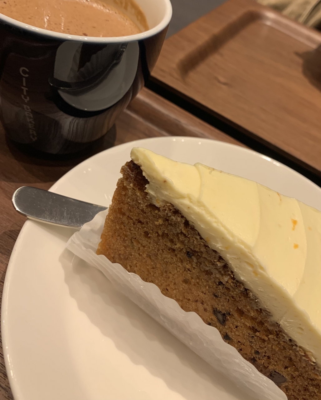天井が高くて、照明の雰囲気もニューヨークのカフェっぽいお洒落な感じです。ホットチョコレートとキャロットケーキを食べましたがどちらも美味しかったです^ ^