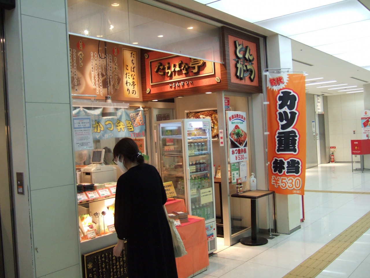 新横浜駅の新幹線改札を出て、エスカレーター裏の通路沿いにあるとんかつ屋さん。横浜市内に何店かあるチェーンですが、新横浜駅店限定でかつ重弁当があります。530円と手ごろな値段ですが大きなカツが乗っており、新幹線で食べるのにも好適です。