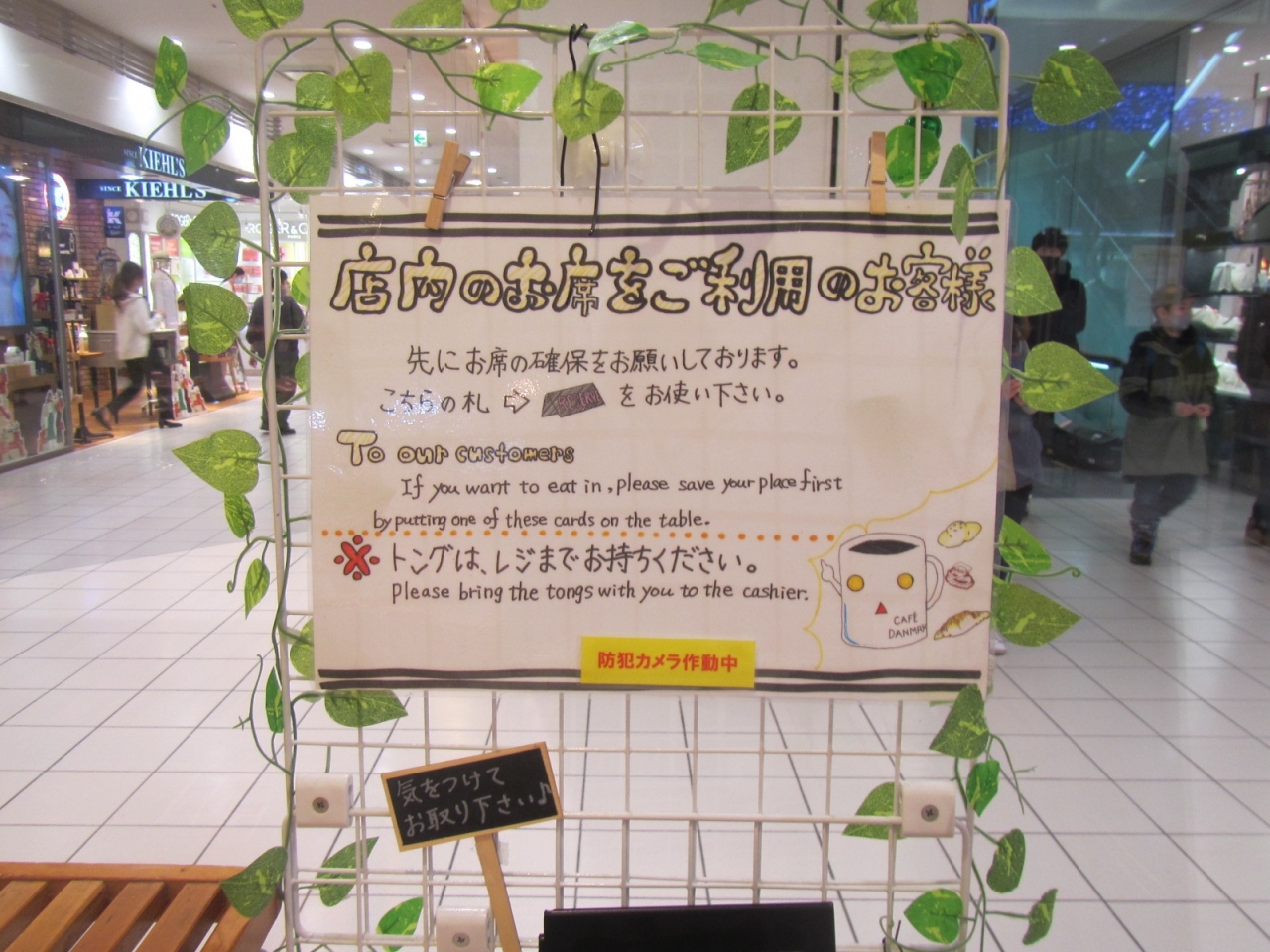 駅西口の地下コンコースに面していて目につきやすく、見つけやすいお店ですが、イートインコーナーは店内通路又は奥側です。