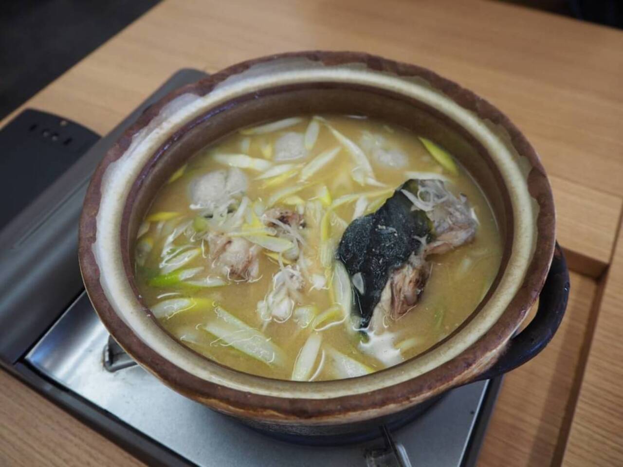 土鍋で提供される漁師汁も出汁がすごくて、あらにも身がいっぱいついてて食べごたえありました。これはうれしい!!