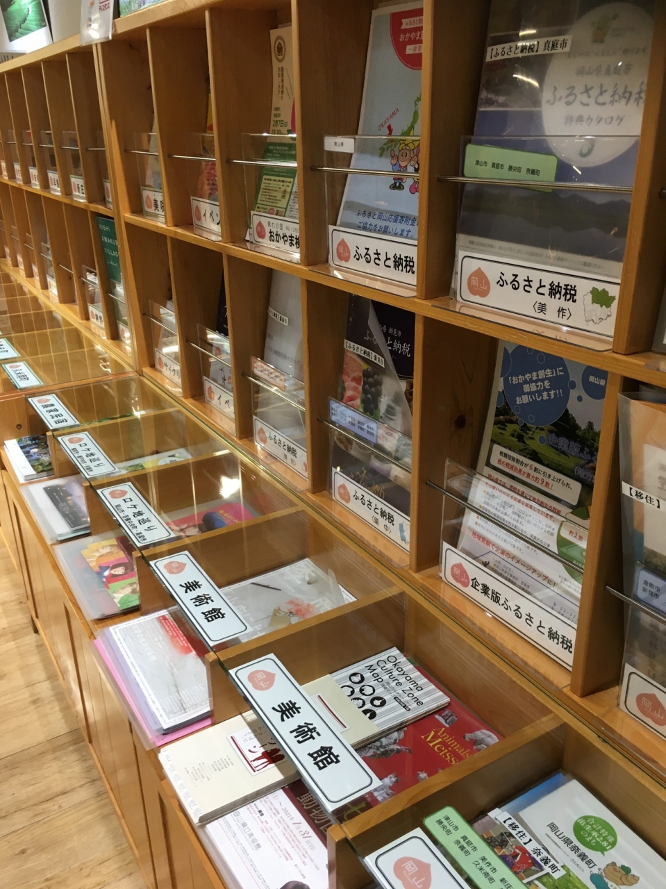 1.2階にあり2階に上がると食事処があり、その手前に観光パンフレットが置いてあり、岡山後楽園他、岡山市の地図を貰いました。その後1階に行き、物産コーナーを散策しました。地元ででしか販売していない珍しいものばかりで見るだけでも楽しい場所でした。