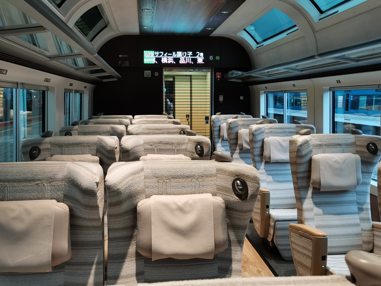 新しいオールグリーン車の踊り子号に乗ってきました。下田の始発駅から乗りました。