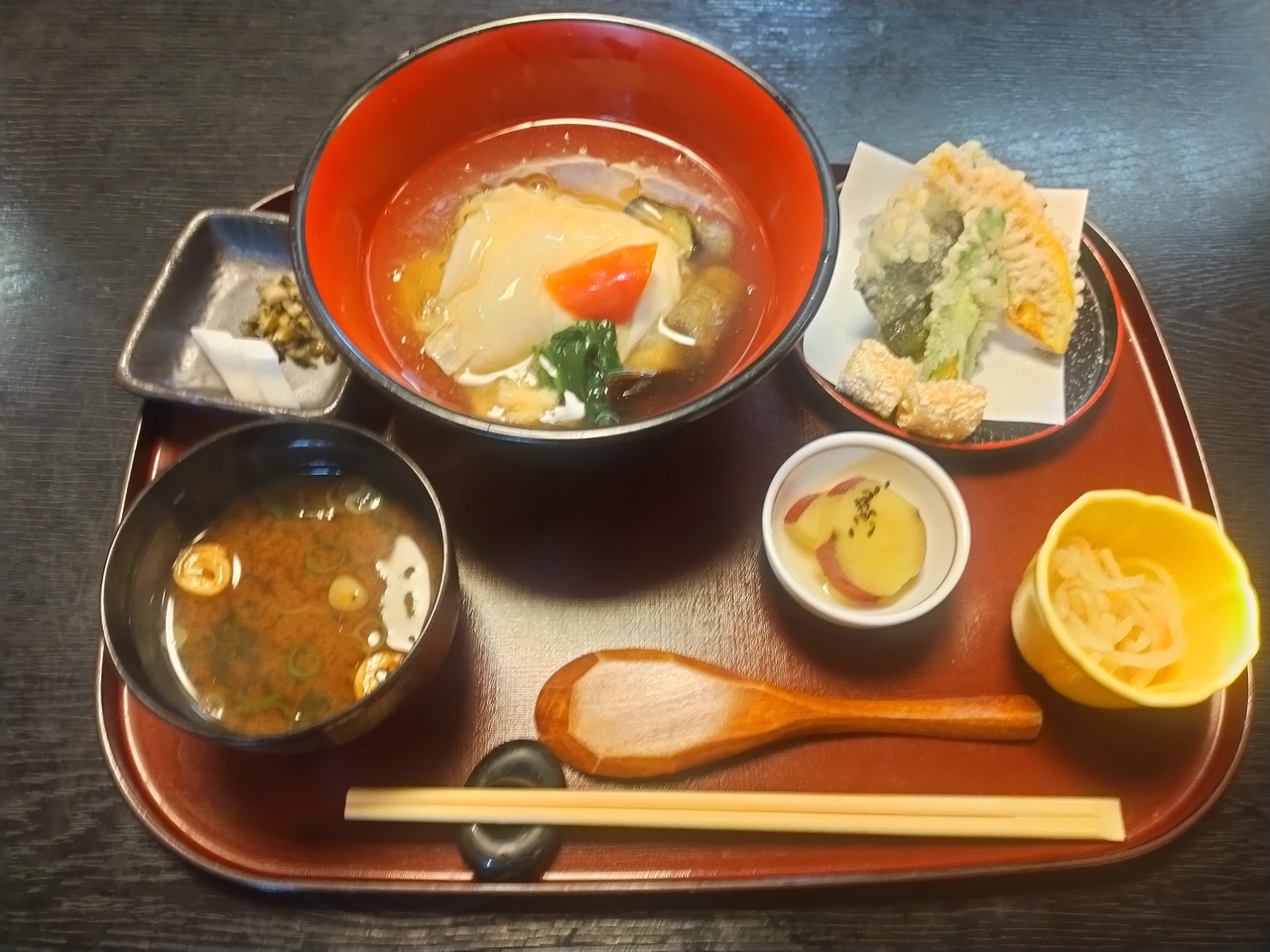 味噌田楽ののれんが揺れているのを見たのでふらりとこちらのお店に入りました。田楽は予算が合わなかったので、湯葉あんかけ丼を頂きました。料理が運ばれてきた瞬間にお出汁のいい香りがしてきました。食べてみると生姜の風味も効いて、とても美味しかったです。お昼時で慌ただしくしていましたが、1人での訪問にも嫌な顔せず対応してもらいました。