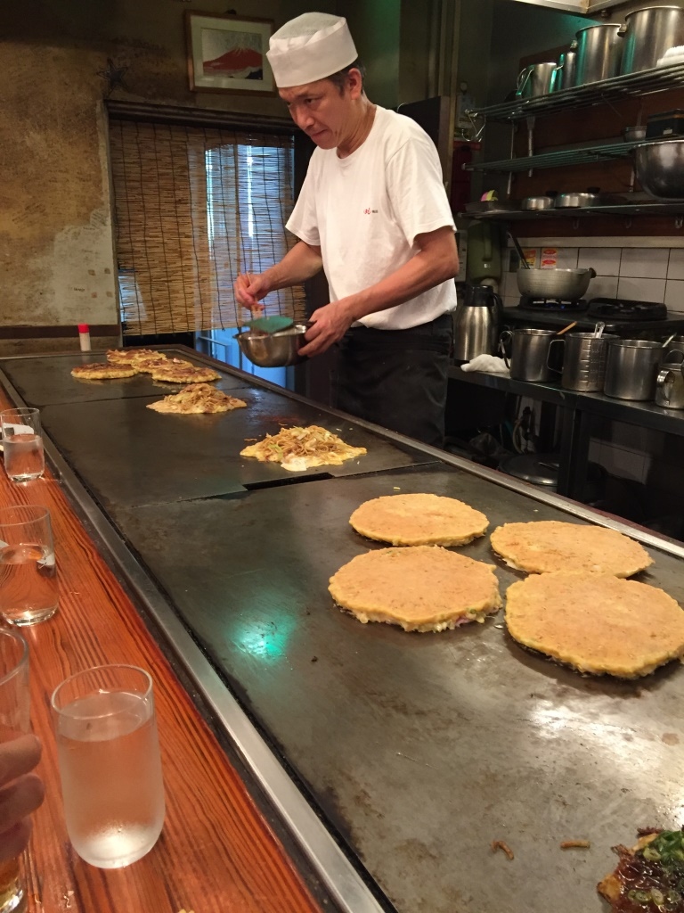 初めてのきじ訪問、本店は狭い食堂街で混む印象があるのでこちらに来てみました。スカイビル店は「レトロ食堂街 滝見小路」にあるのですが、こちらも広くは無いですね。20分くらい待って、鉄板前のカウンターに着席、ビール片手に豚玉をつまみました。やや小ぶりで厚みも控えめ、美味いは美味いです。が、限られた材料でいかに美味くたらふく食べるか?で生み出された料理が”お好み焼き”だとすると、昔食べていたものとは違う世界の食べ物になってしまったのか…。これに並んでそこそこのお代を払うとなると、正直一度でいいかな…というのが本音です。
