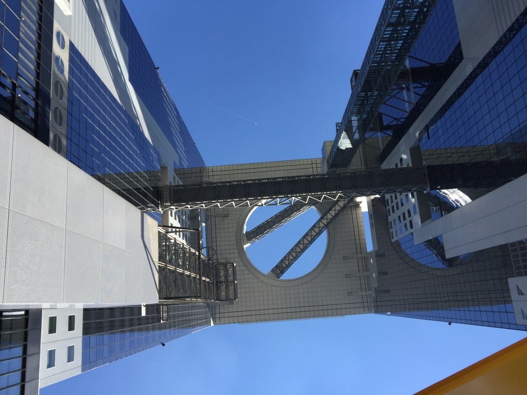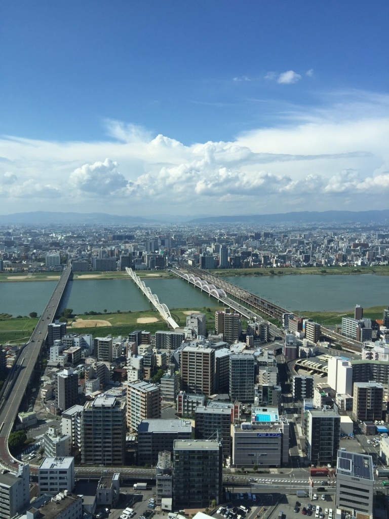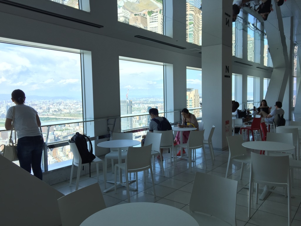 スカイビルの空中庭園にあるカフェ&バーです。西側の淀川のリバービューと、南側にはキタの高層ビル群のシティービューを望みながら、カフェや世界のビールが楽しめます。こういうシチュエーションが大好きな外国人で賑わっていました。