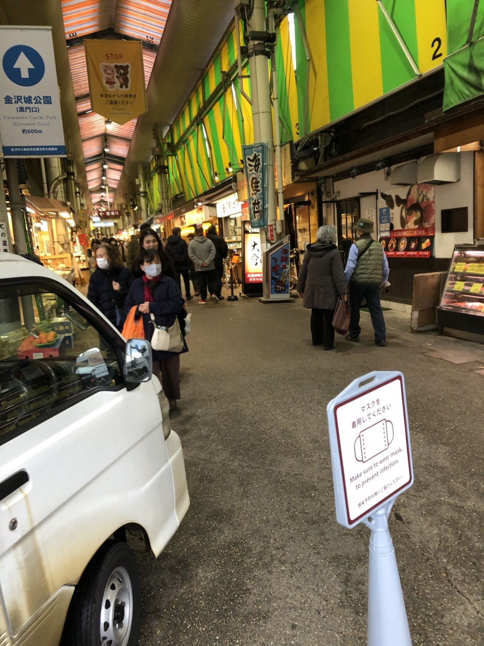 観光客がたくさん戻りつつある近江町市場です。今回は夕飯の材料を探しにきました。鰻、ぶり、蟹、海老など魚ばかりかと思っていましたが市場を回ると野菜、惣菜などを扱う店もありまだまだ知らない事がある近江町市場でした。