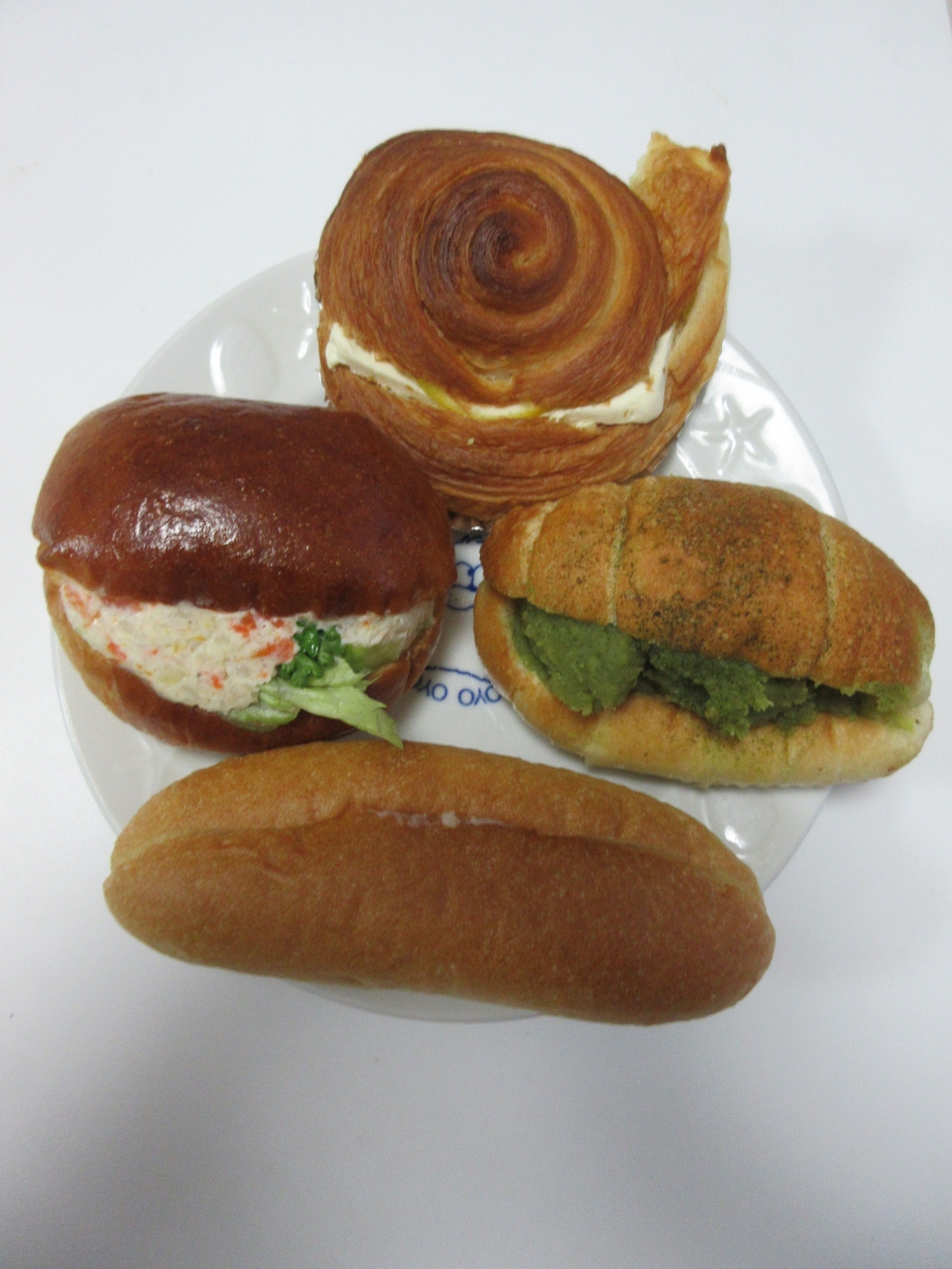 JR王子駅北口から5分ほど、王子2丁目バス停近くの路地を入ったところに建つベーカリーです。先日、築地にある明治43年創業の木村家ペストリーショップに行った際に、明治堂で研修を受けパンの製造について学ばしてもらったという話を聞き、久しぶりに明治堂を訪れました。店内には100種類ほどのパンが並んでいて、どれを購入しようか迷ってしまうほどでした。2時頃に訪れましたが、店の奥で焼いたパンが次々と店頭に並び、人気のパン屋さんであることを実感しました。
