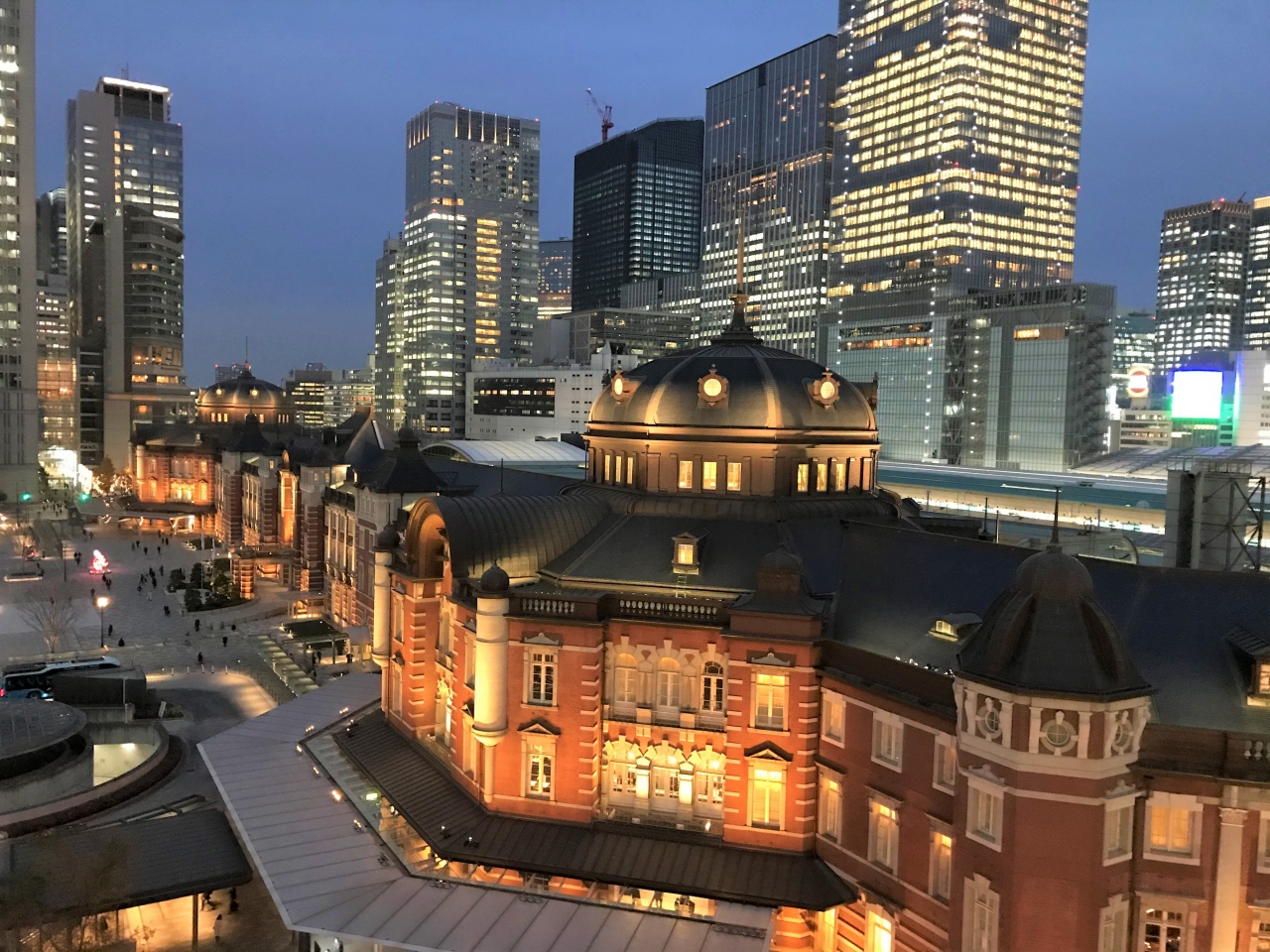 KITTEガーデンからの眺めは、東京駅の南口サイドを目の前にした立体的な東京駅の姿。KITTEガーデンから写真を撮ると奥行きのある東京駅の姿となります。