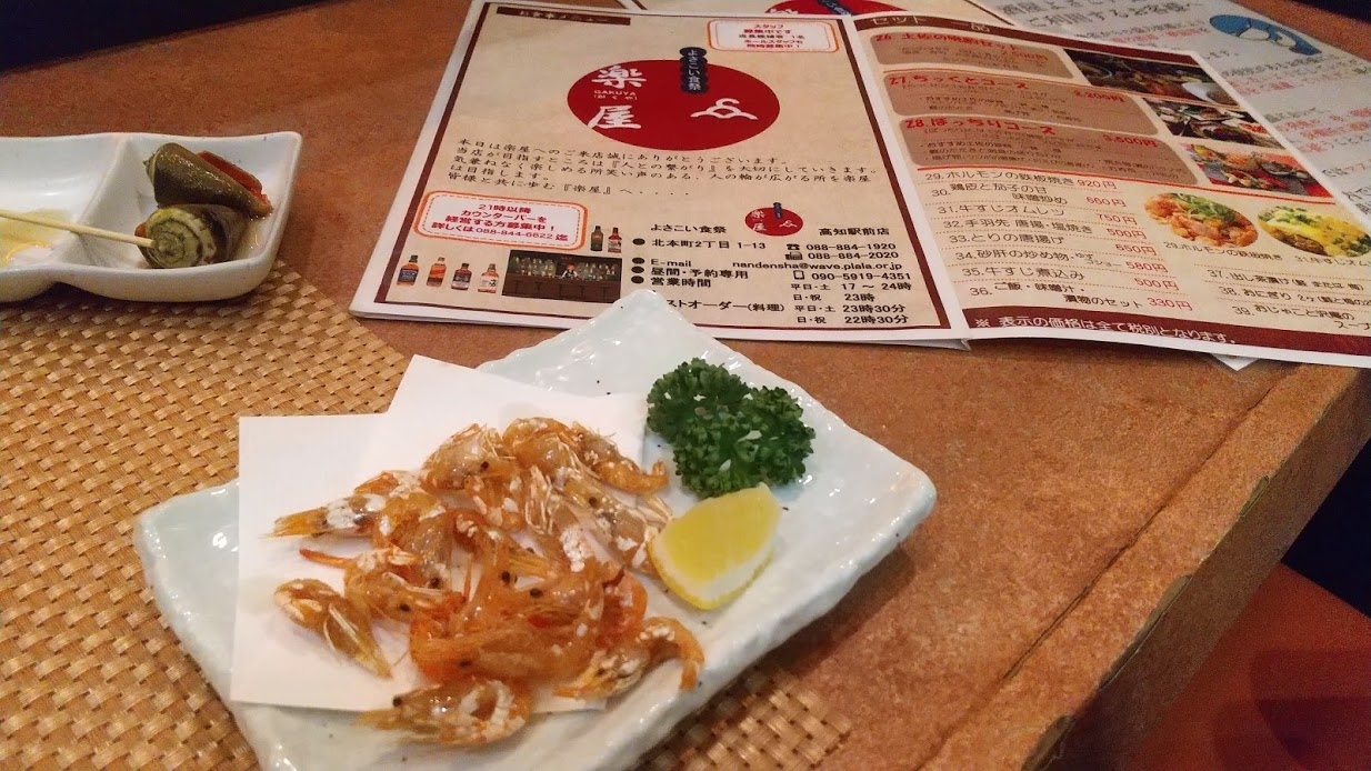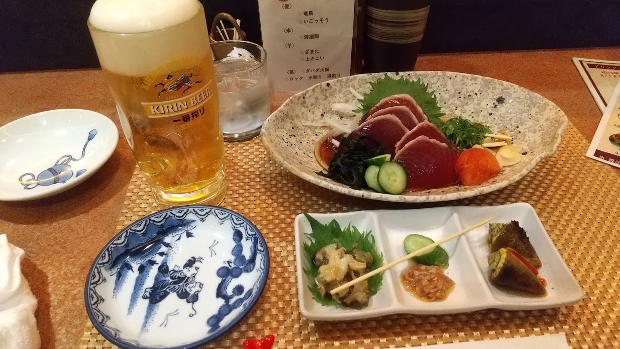 JR高知駅周辺にはホテルが何軒かありますが、食事処はそれほど多くはありません。ここはホテル楽屋の1階にある居酒屋でホテル宿泊者だけでなく、地元の人にも利用されている店です。土佐料理がいろいろあり、お手軽に楽しめます。