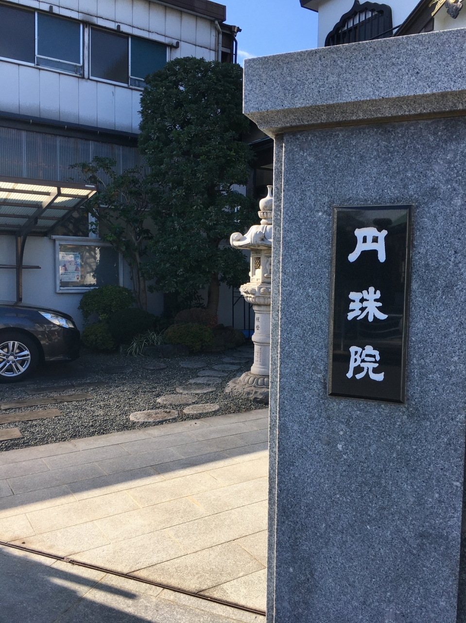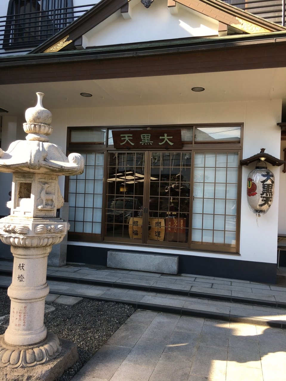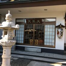 道路沿いに面していて自宅を兼用しているようなお寺でした。大黒天の白い大きな提灯がぶら下がり、中を覗くことが出来ますが太陽に反射しよく中は見えませんでした。大きな灯籠も建っていて境内と言うより庭といった感じの場所でした。