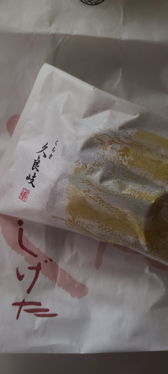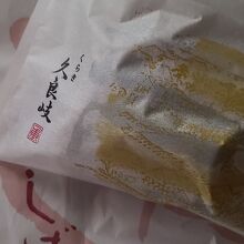 栗ひろい(スイートポテト「)と迷った末、久良岐を購入、栗とあっさりしたこしあんをケーキのような生地で包んだものです。