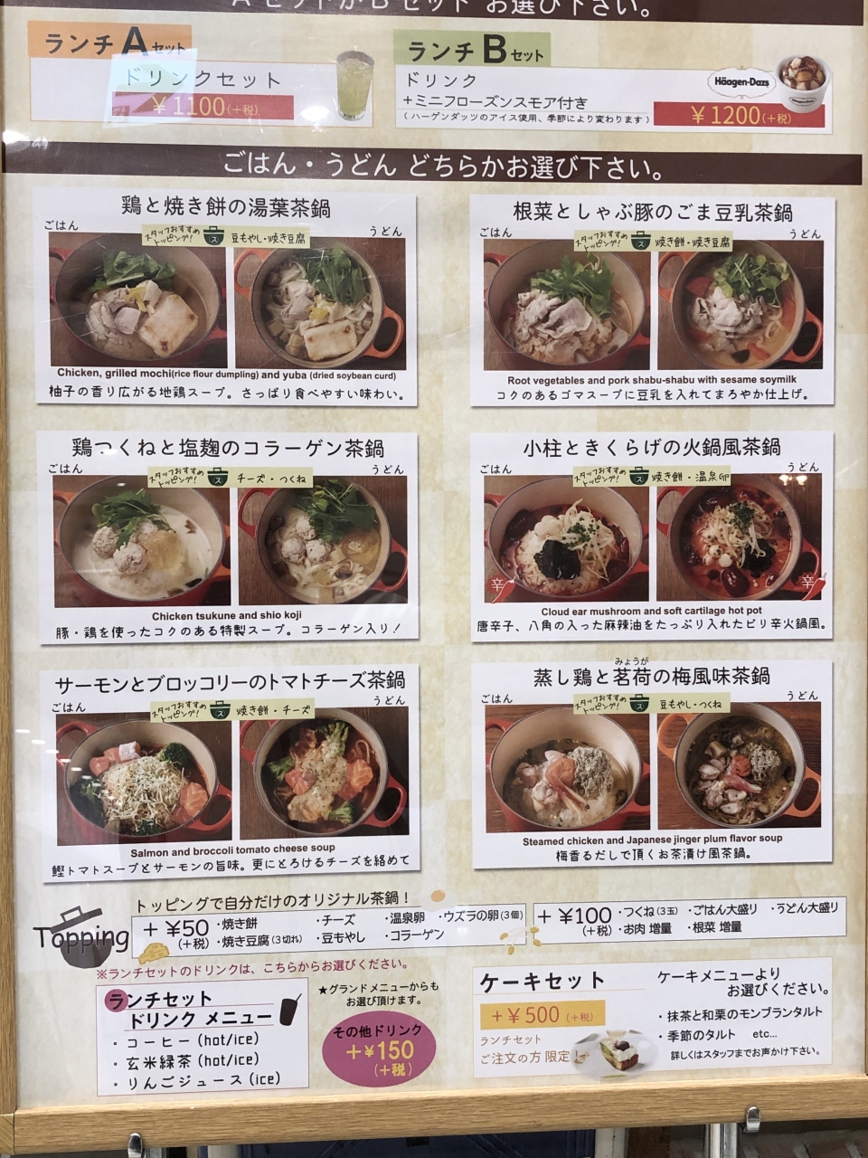 サンシャインシティアルパ1階にある茶鍋Café kagurazaka saryoでテイクアウトしました。神楽坂茶寮本店を利用したことがありますが、今回初めてサンシャイン店を利用しました。梅風味茶鍋を注文しました。こぼれない工夫をした容器にスープとご飯が入っていました。店内のメニューは小鉢がついていますが、テイクアウトはスープとご飯のみで価格が下げられています。蒸し鶏、サイコロ状の大根、人参、れんこん、しいたけ、梅干し、みょうが、とろろ昆布など具が多く、栄養バランスがよく満足しました。