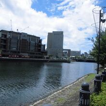 横浜の中心部にあります。桜木町駅からだと歩いて7分程度でしょうか?周りは高層ビルでランドマークタワーも見える環境にこのような緑のある場所は本当に心が落ち着きます。汽車道を通って万国橋を渡って桜木町駅に戻れば15分くらいでしかかからないので手短に散歩したい人にもお勧めです。