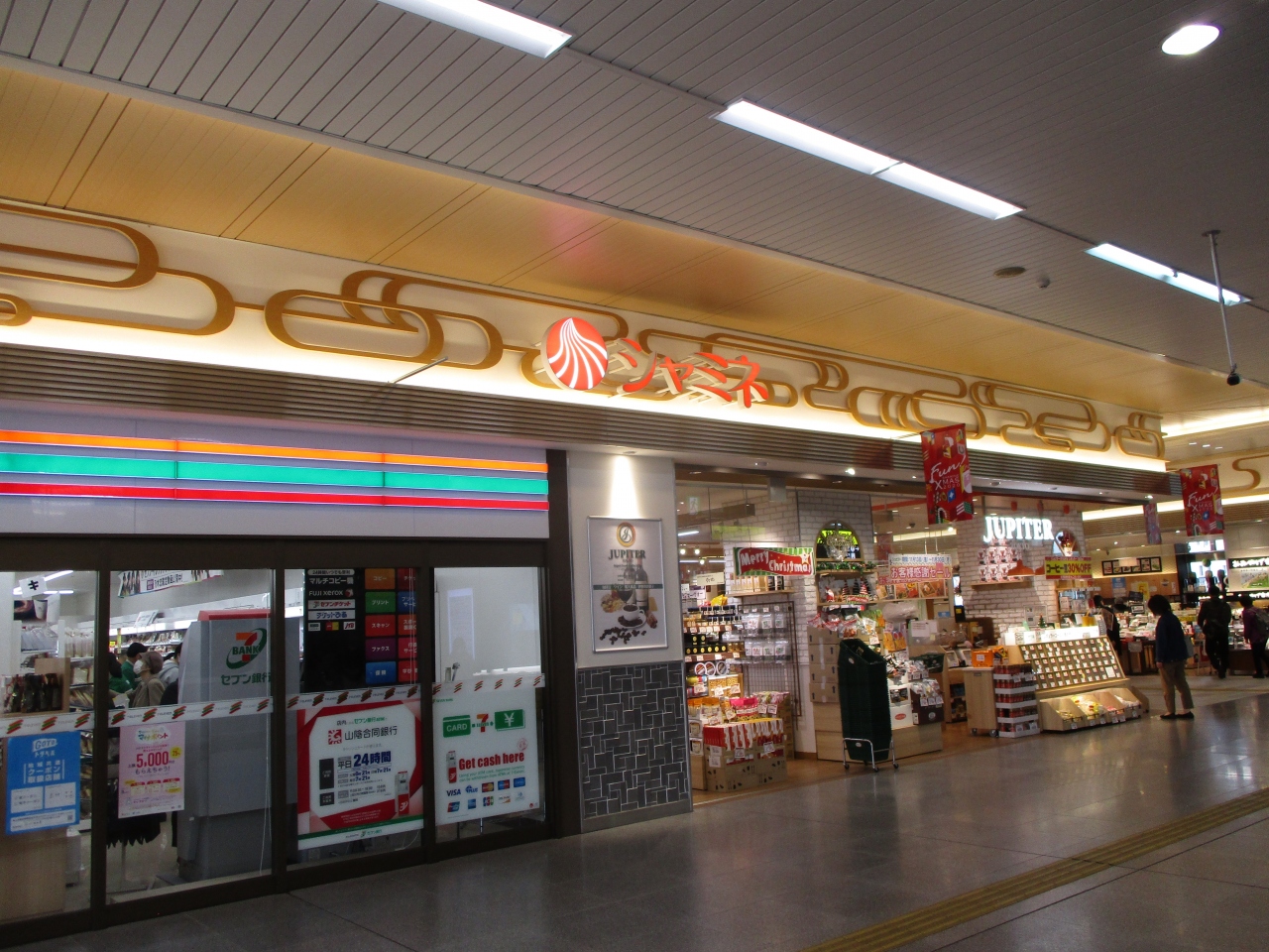 松江駅の改札を出るとすぐ目の前にありました。大きな都市らしく、数多くの店舗が入っていて、地元の方々の出入りも朝から夜遅くまで頻繁にありました。改札の前にジュピターがあるというのが特に都会的だなと感じました。