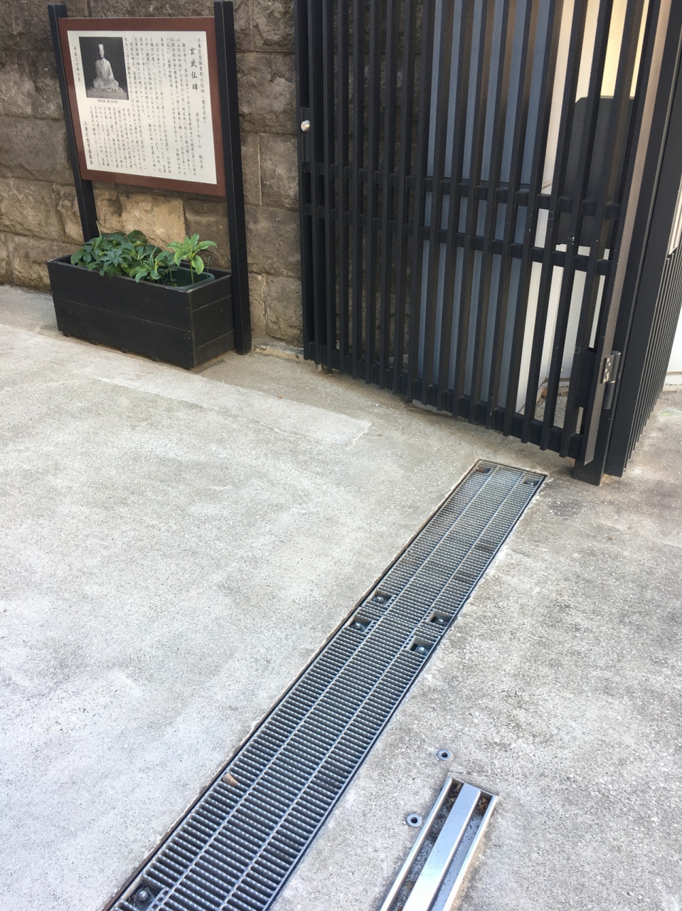 大通り沿いと路地裏に面した寺で塀が高く、お墓を囲っているような外観でした。本殿のようなものは見当たらず自宅兼用のようでした。観光寺院ではないので中には入れませんでしたが、小さな駐車場の傍に玄武仏碑の説明看板があって江東区の有形文化財とのことです。