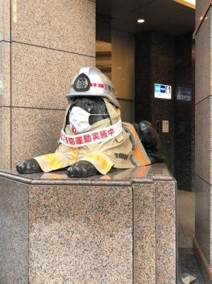 地上の入り口には有名なライオンがいるのですがなんと今回は消防士さんのスタイルでかつマスク。世相を映していますね。