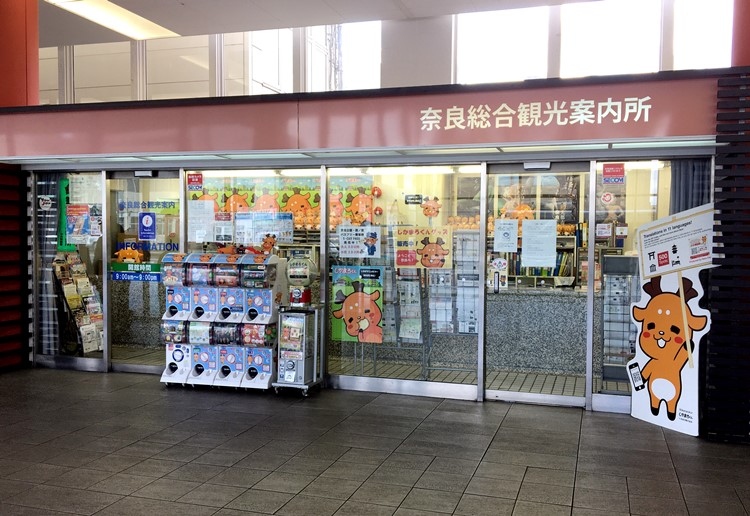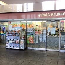 近鉄奈良駅の1階に観光案内所があります。ちょうどすぐ横に「行基菩薩の噴水」があるので、待ち合わせにも便利な場所です。中は少し狭いので、利用客が数人いるとすぐ並んでしまうのが難ですが、パンフ類も揃っていて、的確に周辺の案内をしてもらえます。