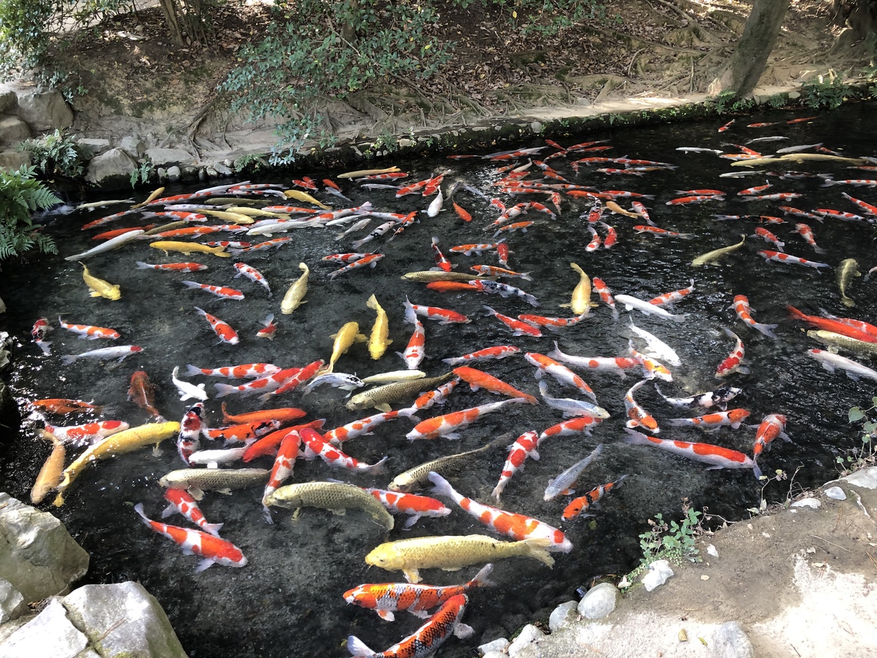 名こそ栗林公園とはいうものの、松と鯉を愛でてほしいとのことでした。湖面からの島々や丘、建物や橋の景色はよく、たまに水面を飛ぶ青い羽の翡翠に魅せられました。