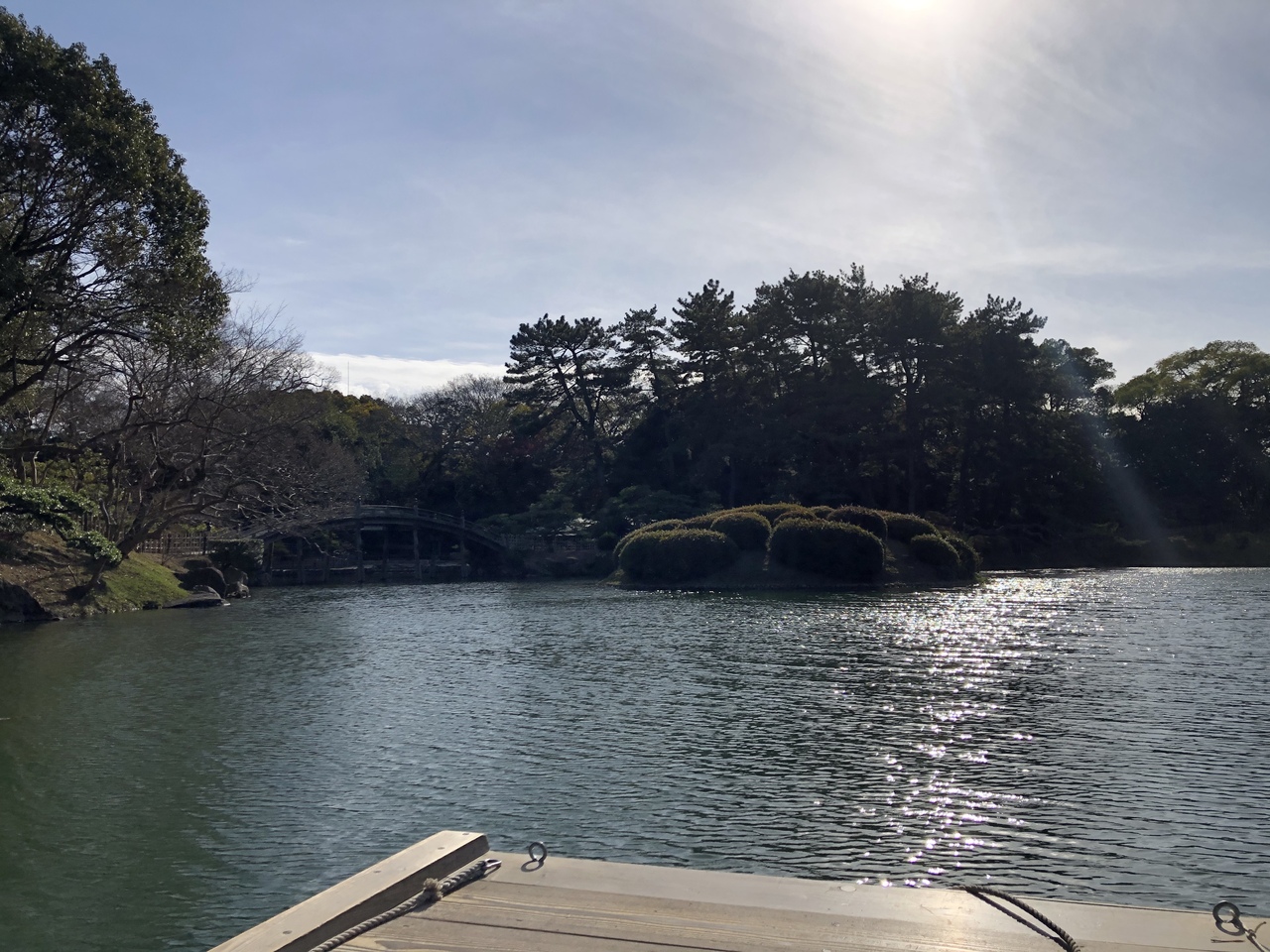 栗林公園の池に浮かぶ島の1つで、島全体がきれいに手入れされたツツジで覆われています。ちょうどマッシュルームのような形の筋がいくつか並んでいると言う感じでしょうか。その中の1つはハート型のものがあり、それはイノシシの目をかたどったものとされており、悪いものを寄せ付けない意図があるそうです。