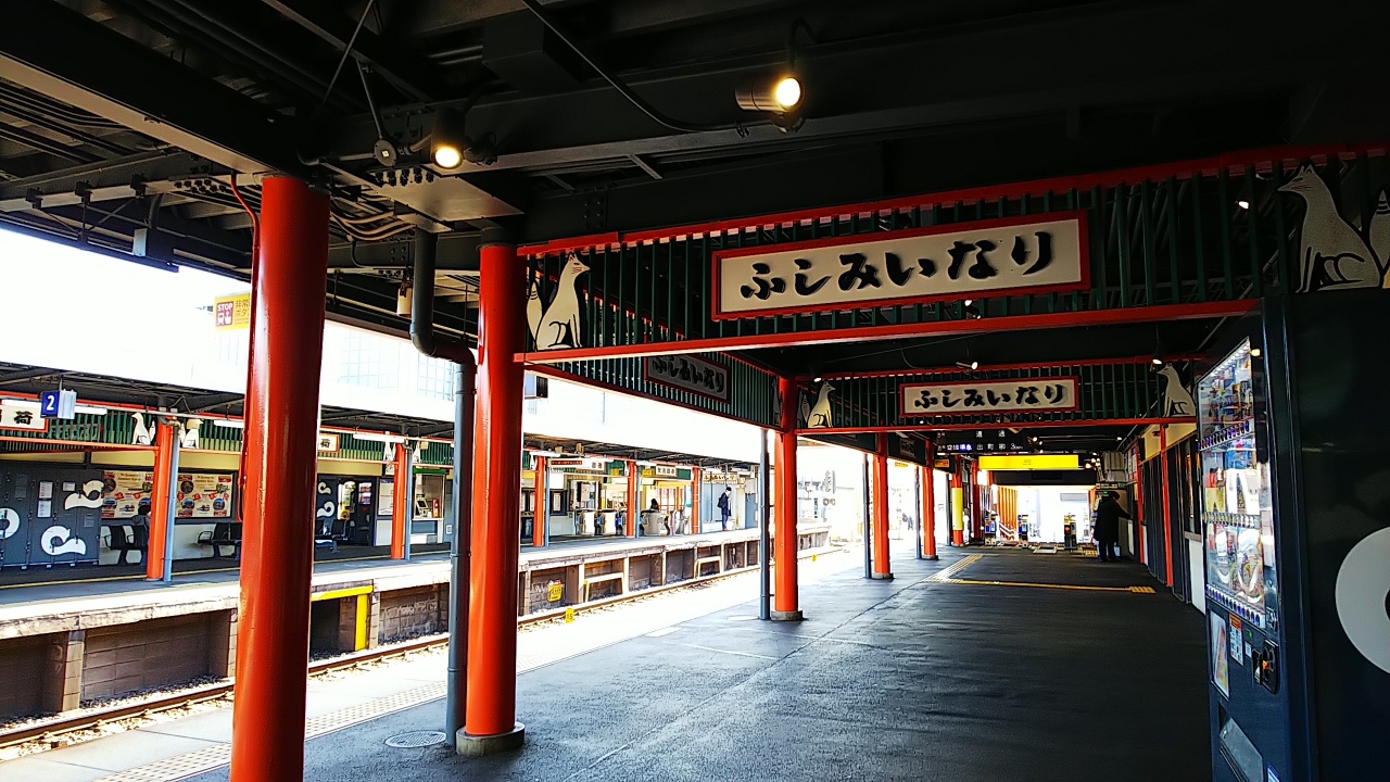 伏見稲荷に行ってから京都市内(河原町)に行くために京阪の伏見稲荷駅です。