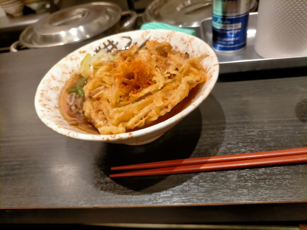 JRの塩崎駅からスタートして小淵沢駅まで甲州街道の旧道を歩きましたが、途中食事処がなくコンビニで昼を済ませていて、ゴールの小淵沢駅の改札脇にあったこちらのお店で天ぷらそばを食べました。