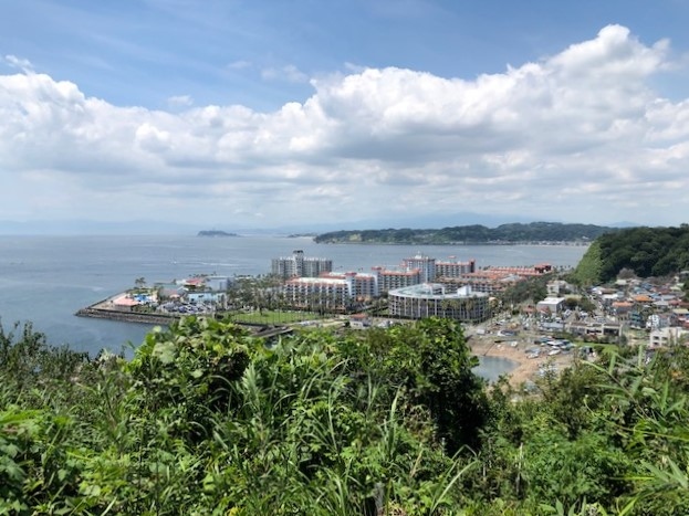 小坪漁港のすぐ上にある岬(山)ですが、小坪漁港からアクセスできる道はなく、披露山公園の方へ大きく迂回して、ようやくたどり着きました。大崎公園には駐車場はなく、公園には、歩いて10分ほど離れたところにある披露山公園の駐車場を使うようにという掲示がありました。