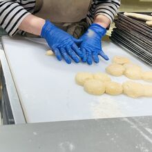 焼きたてのパンが販売されていて、作っているところを、ガラス越しに見ることができます。