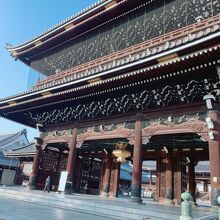 京都駅に用事があり少し早く着いたので東本願寺を参拝させていただきました。まず御堂門から入りました。とても荘厳な建物です。現代では作るのがむずかしそうな贅を尽くした意匠が光りますね。かっこいい建築にしばしうっとり。