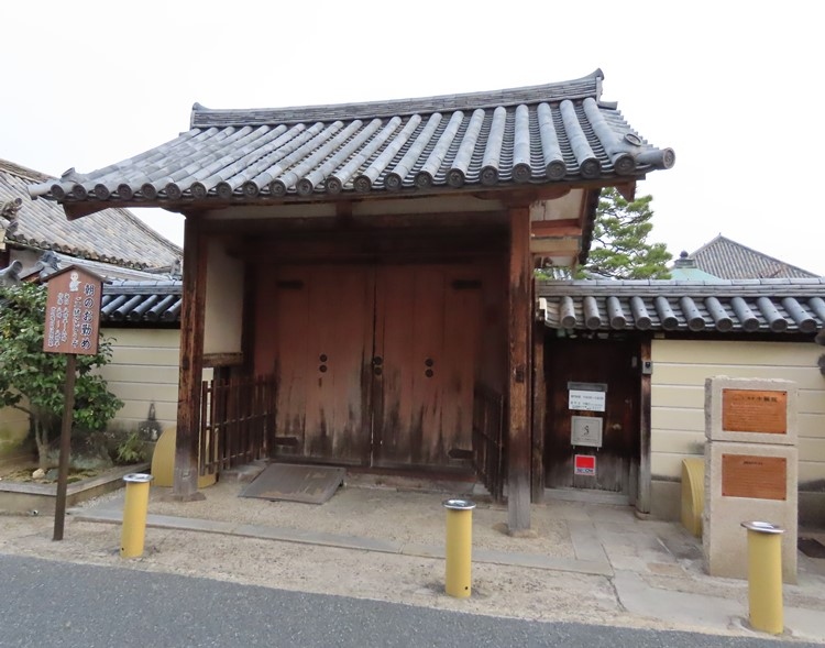 真言宗醍醐寺派の寺院。かつては広大だった元興寺旧境内の南東隅にあたる場所なのだそうです。「朝のお勤めをご一緒に」と門前にあるようにオープンなお寺のようで、観光客が参加するのはどうかわかりませんが午前8時に開門すると、希望者は30分間の作務の後にお勤めができるようです。本堂は国宝に指定されているということで門前まで訪ねたのですが開門前で残念でした。